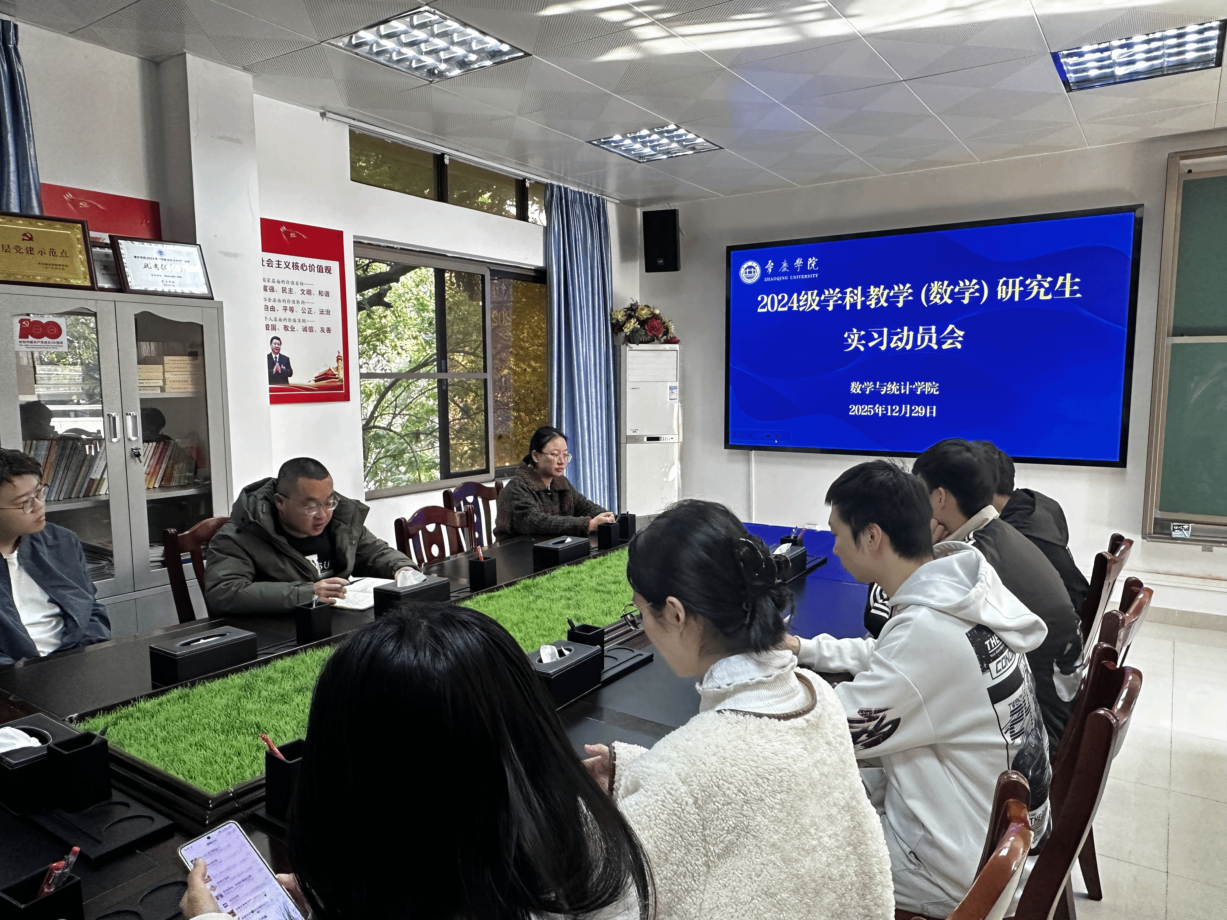 2025年12月29日数学与统计学院学科教学(数学)24级硕士研究生实习工作布置会在学院会议室308召开。程从华副院长、丁圣珍老师和全体24级研究生出席会议。