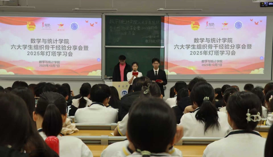 2025年12月7日,学院六大学生组织骨干经验分享会暨2025年灯塔学习会在主校区新建教学楼B206教室举行,250名师生代表共同参会。