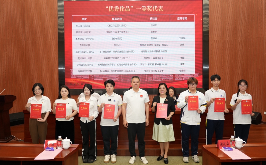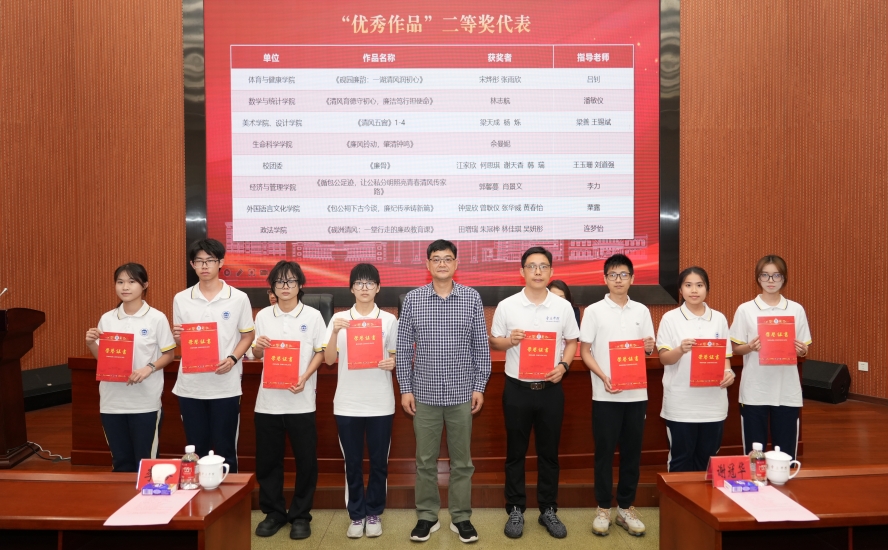 近日,学校表彰2025年第十届高校廉洁教育系列活动评选作品,学院师生12项作品荣获学校表彰,学院获“优秀组织奖”,1作品获评全国优秀作品。12项获奖作品涵盖征文、创意作品、文化课四大类别。