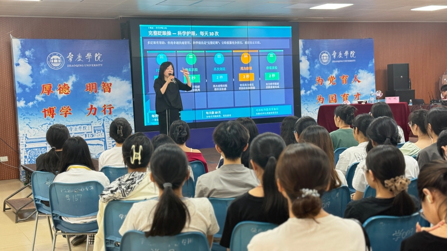 4月9日下午,“远离眼病,享清晰‘视’界”眼健康科普讲座在青年活动厅举行。本次活动由我院团委与文传团委青志部联合承办,特邀肇庆市第一人民医院眼科刘姣教授主讲。学校宣传部部长马舒洁与百余名师生共同参与,现场气氛专注热烈。