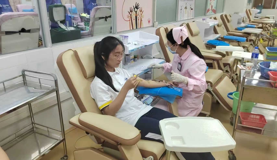 活动伊始,血站医护工作者为同学们带来了一场生动详实的科普讲座。主讲人运用科学数据和真实案例讲解献血条件、注意事项及常见误区。随后,师生们在血站工作人员的引导下,沿着“血源—体采—成分—供血”的完整流程。在献血登记区,同学们亲身体验了血型检测、血压测量等环节,直观感受献血前的规范流程。令人感动的是,来自2025级数学与应用数学3班的李苏则同学在现场主动献血,用实际行动诠释了青年学子的责任与担当。