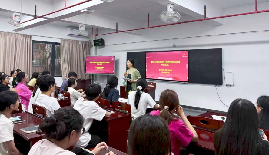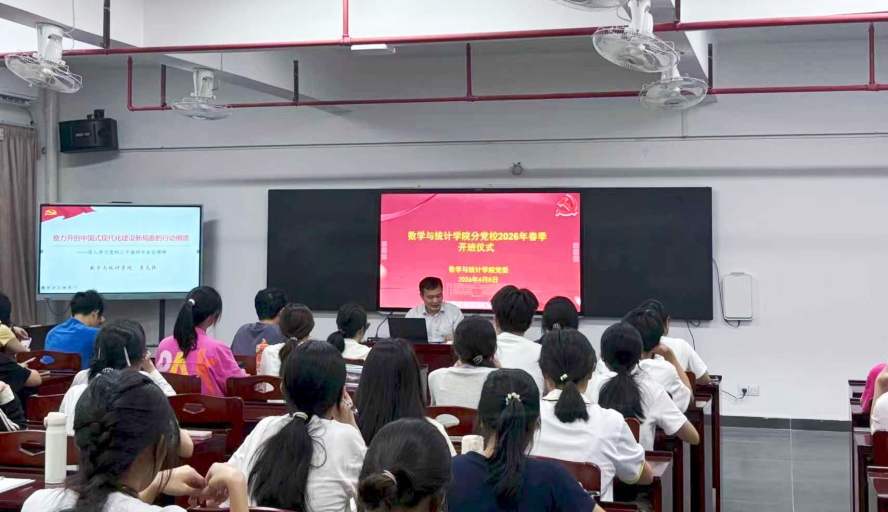 4月8日,数学与统计学院分党校2026年春季培训班开班仪式在实训大楼214举行。本次培训旨在加强对入党积极分子、发展对象的教育培养,引导学员坚定理想信念,端正入党动机,提升学员思想觉悟,确保党员发展质量。学院党委书记李先强、组织员汤瑞雪老师以及本期全体学员参加了活动。